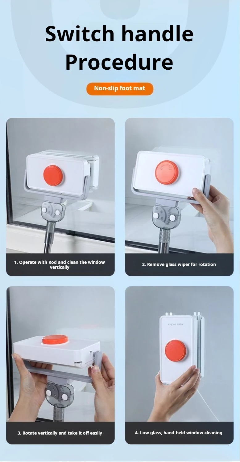 3、Can switch between manual and extended rod cleaning modes at will, the extended telescopic rod can be automatically disassembled, if not disassembled, and use a manual window cleaner for cleaning, suitable for low-rise glass