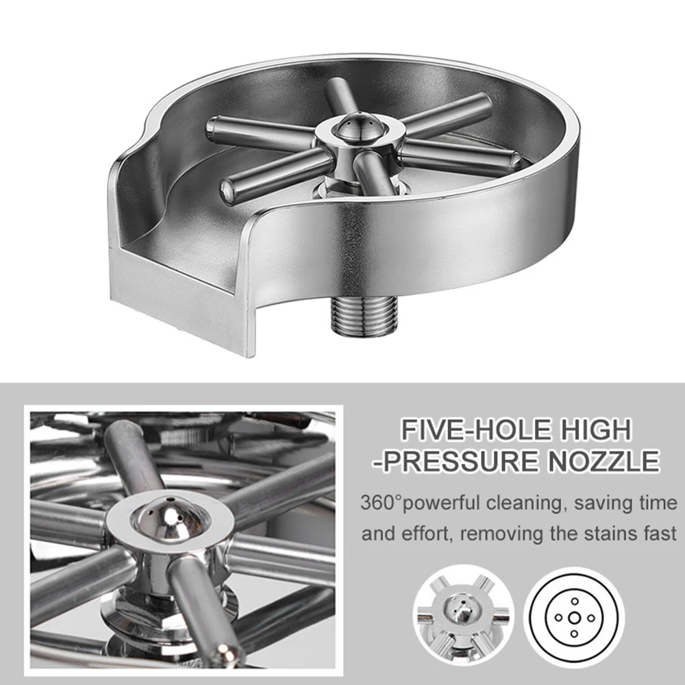 Quick & Powerful Cleaning: The glass rinser has a five-hole nozzle that can achieve 360° high-pressure cleaning, saving time and effort, removing the stains fast.