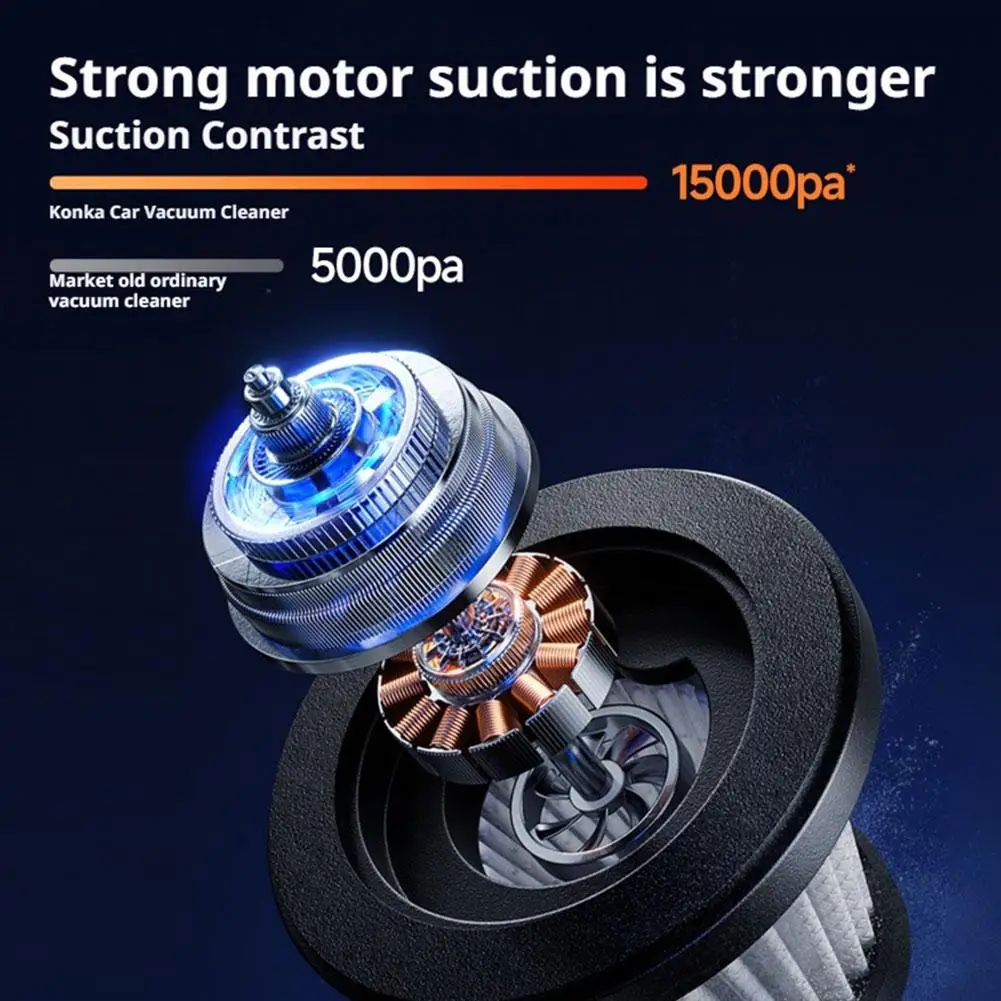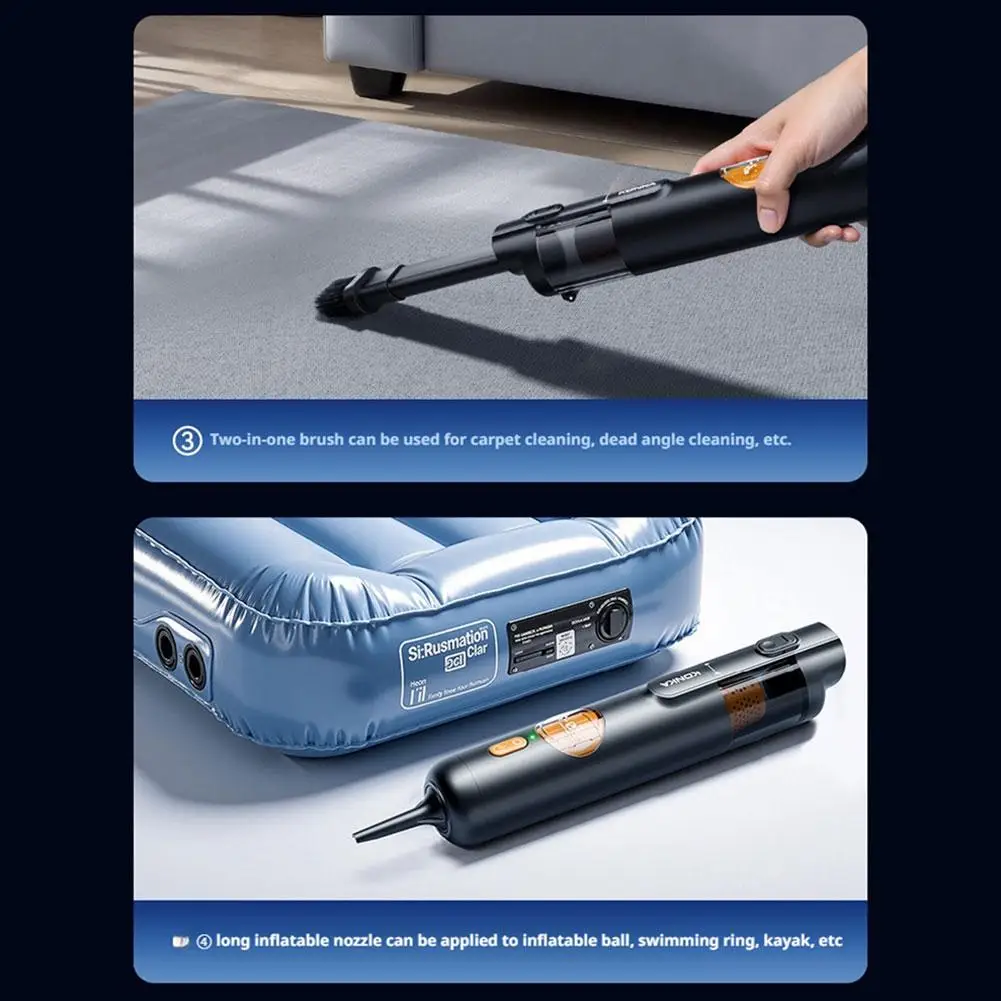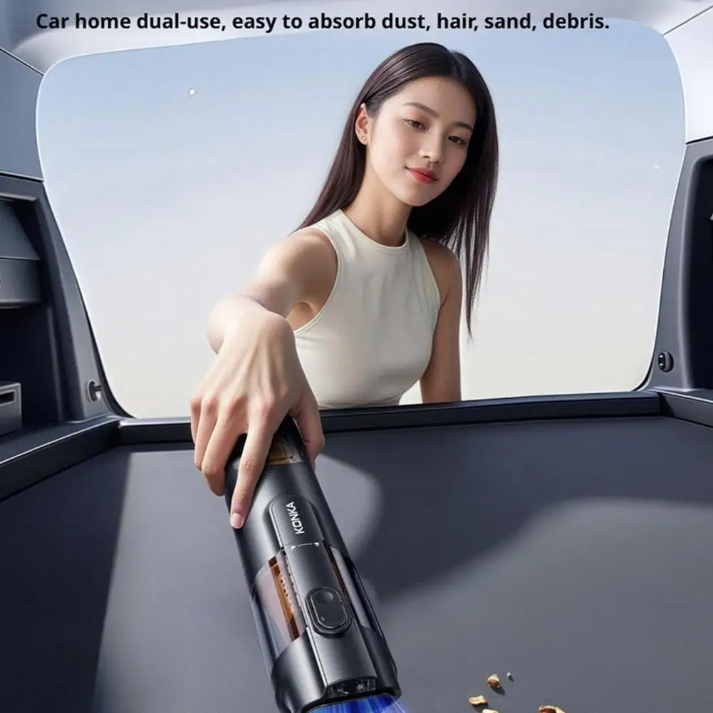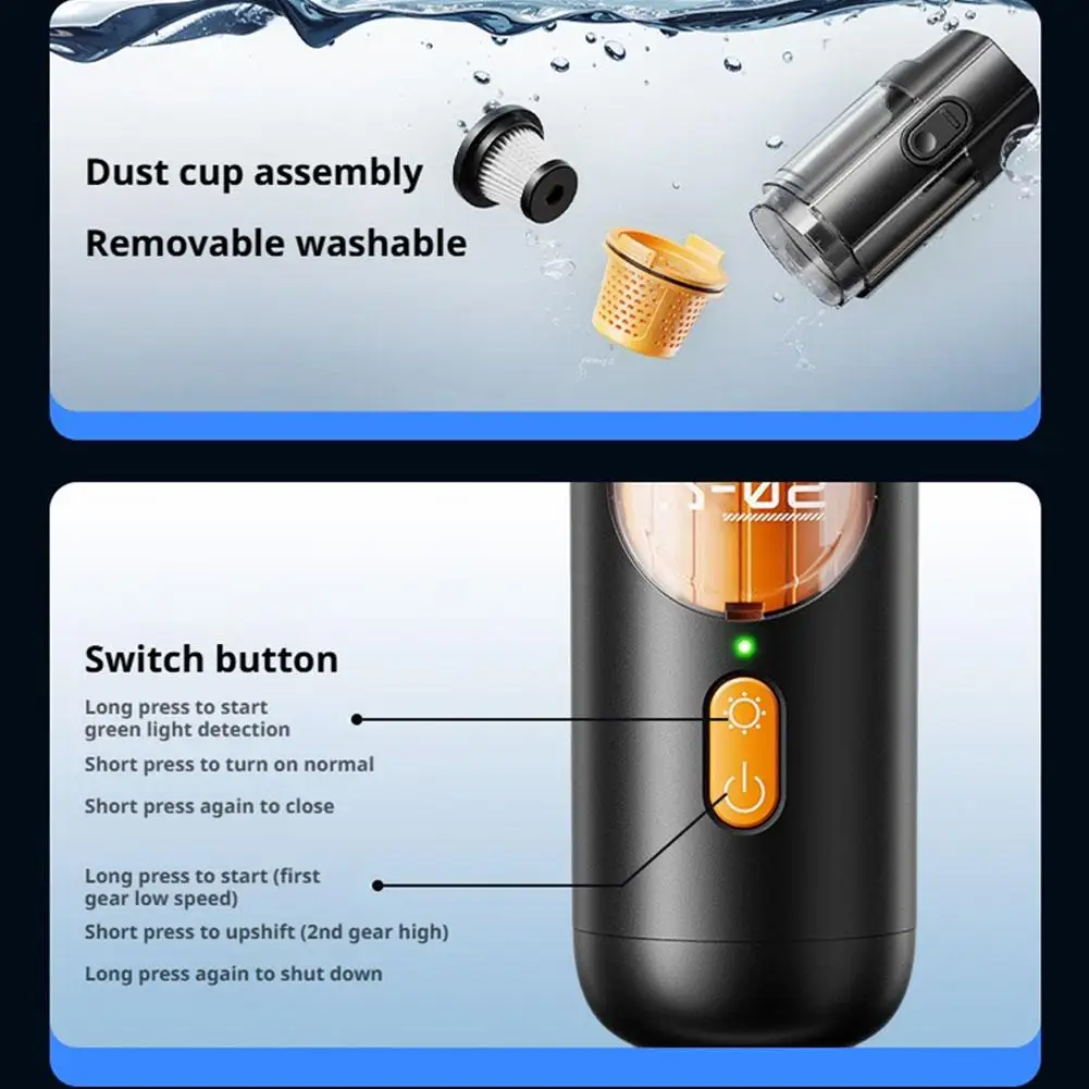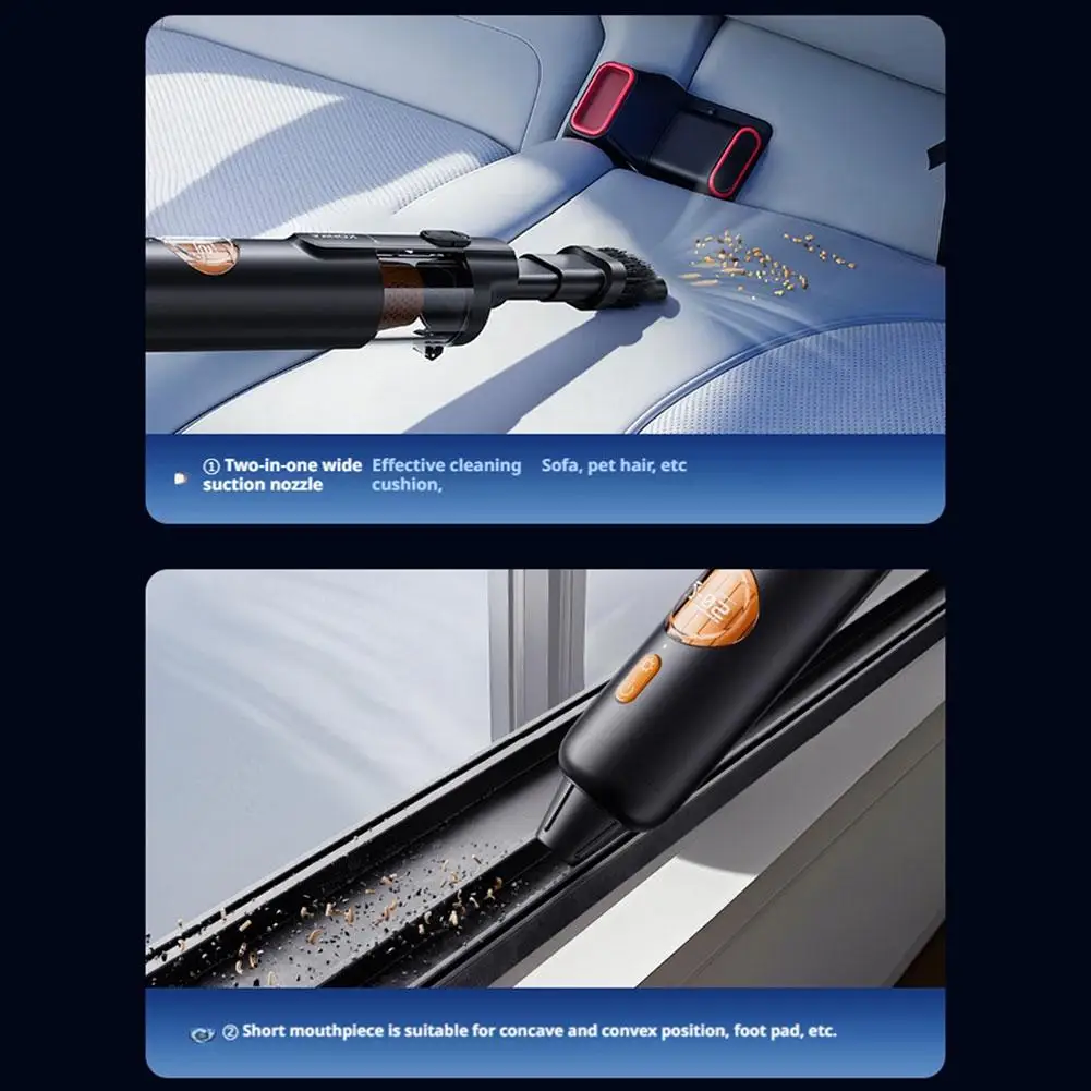 2. Driven by a high-speed motor, it delivers strong 15 kPa suction power with two adjustable speed settings. Easily switch between modes to remove stubborn crumbs from car seats or fine dust from desks with minimal effort.